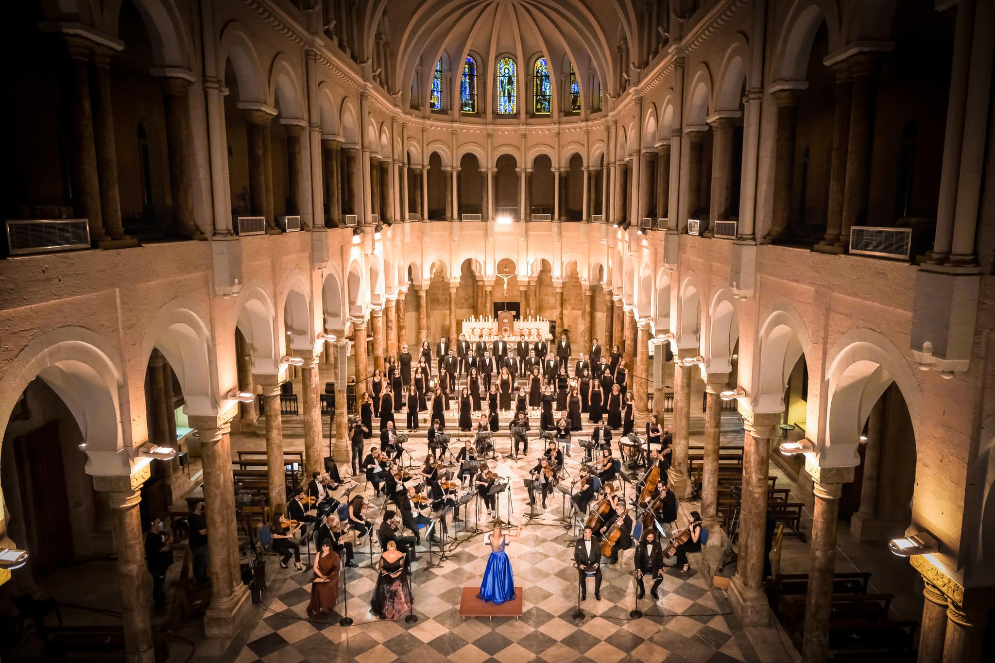Yasmina leads the Université Saint-Joseph choir (Chœur de l’USJ) and the orchestra of the Jeunesse Musicales de Liban (JM Lebanon).